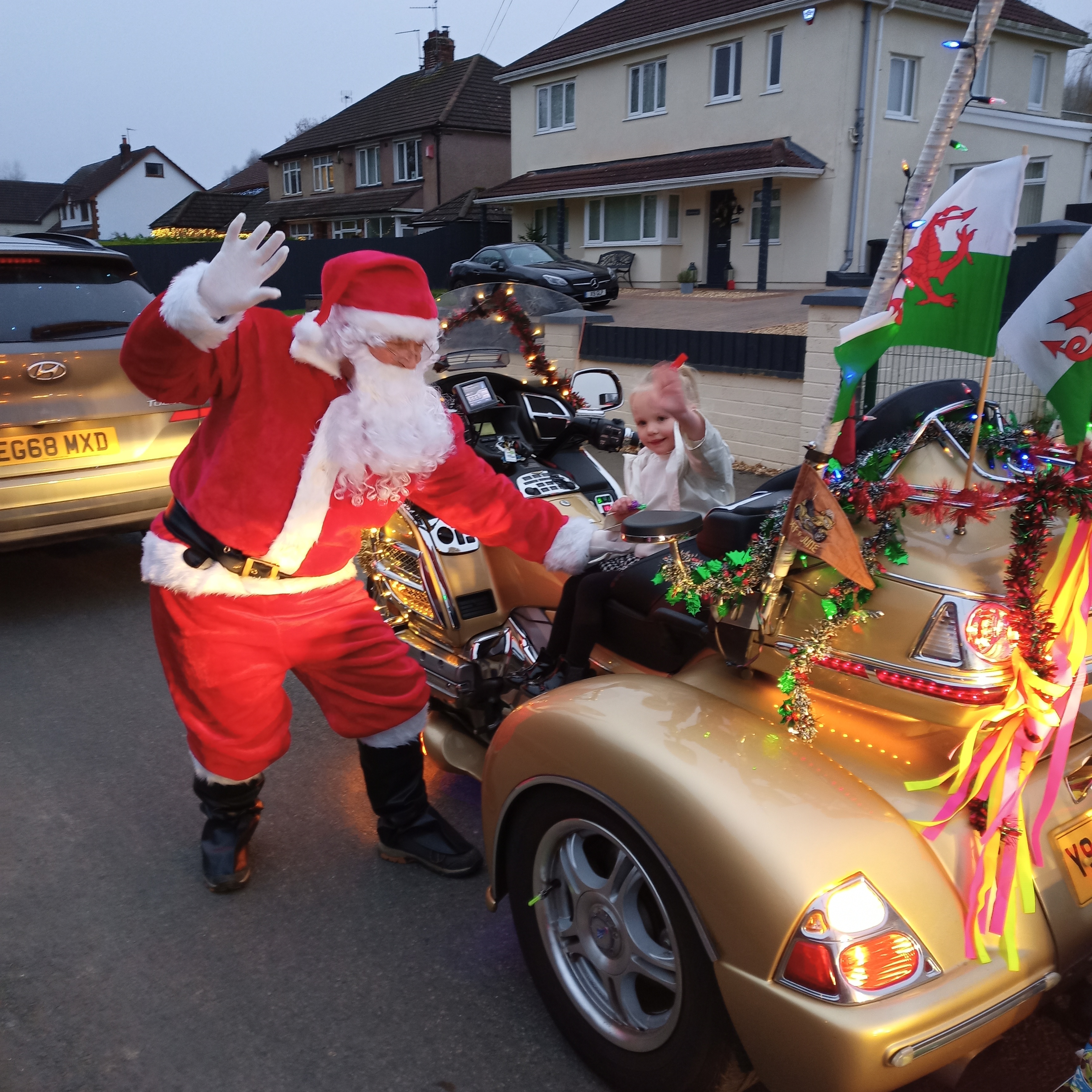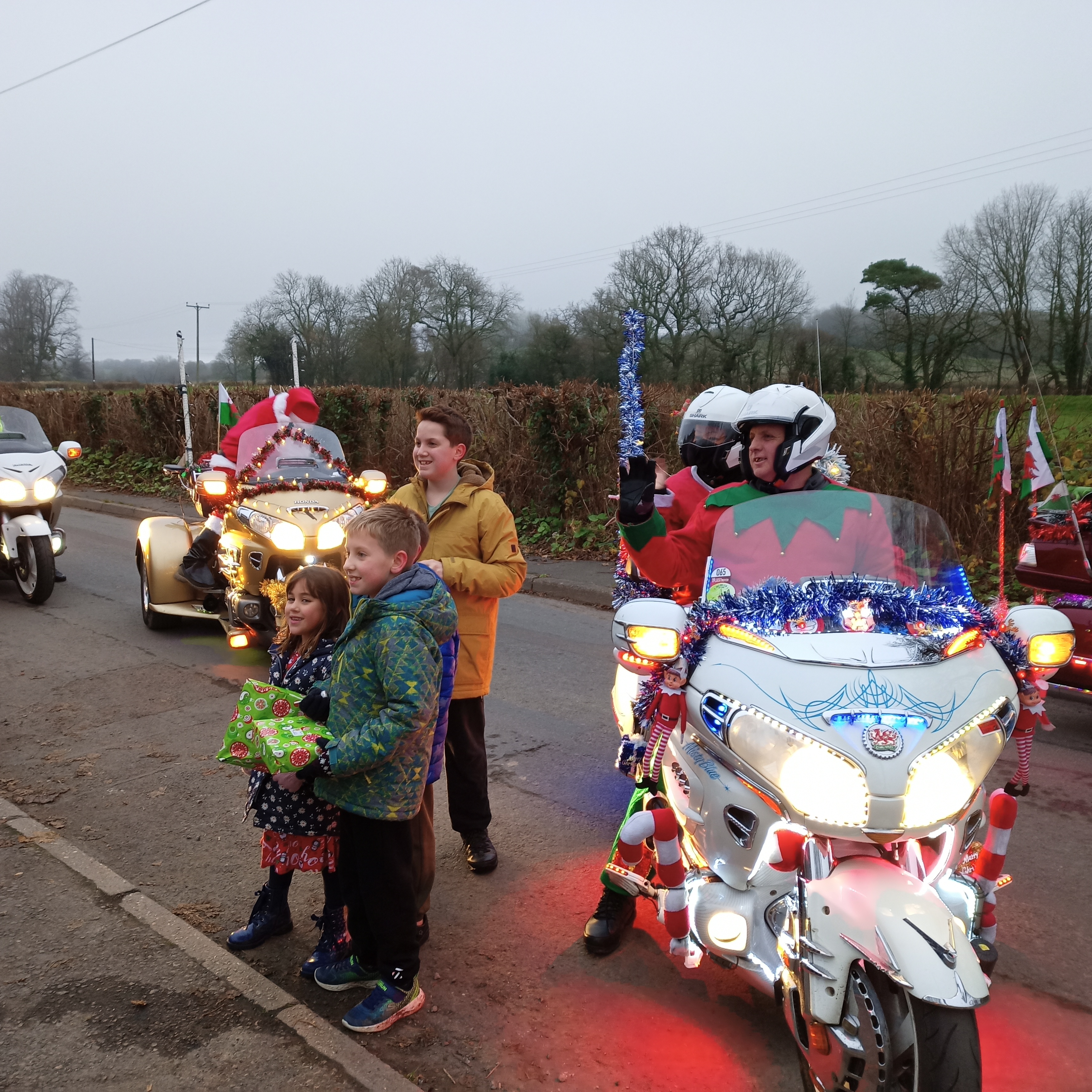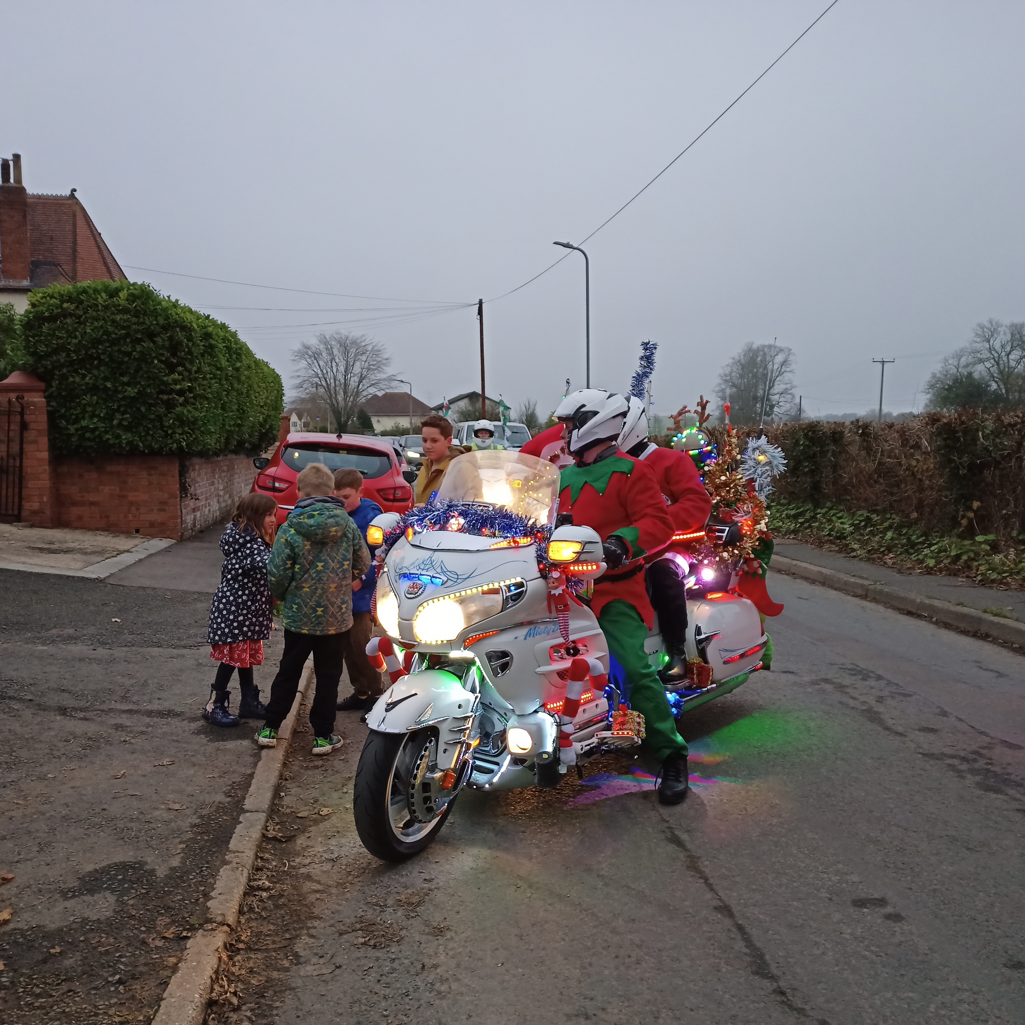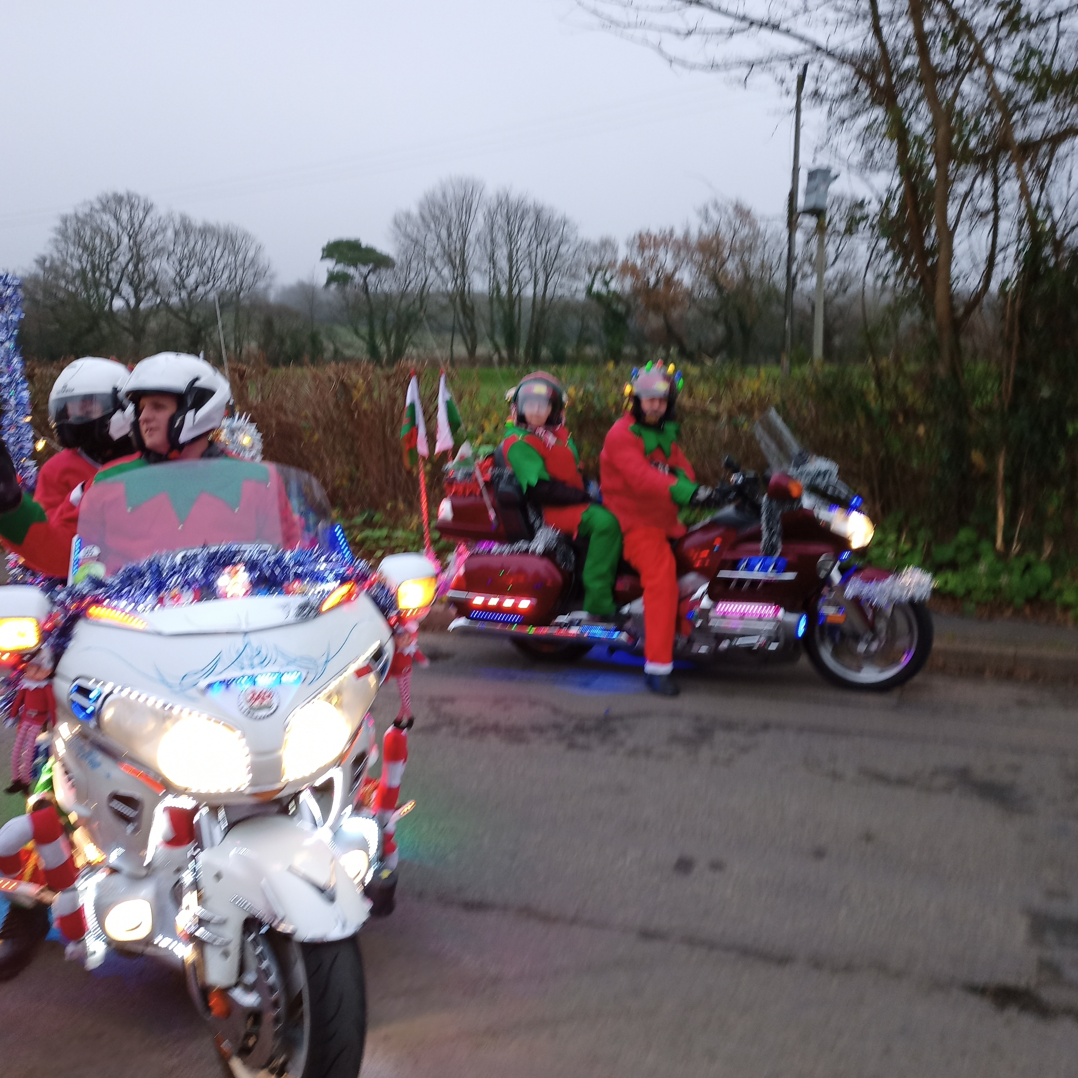 Hopefully, that is now behind us and the work begins on our Wing Ding and Light Parade. However, we did manage to support a local Santa Run at Bishton, Newport, where four units turned up in full regalia and lights. The weather was fine a little overcast but acceptable a few hours delivering parcels on behalf of Santa to local Children leaving them with smiles on their faces well worth it.